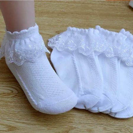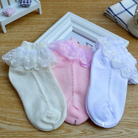 বাচ্চাদের মোজা কমফোর্টেবল লেস ডিজাইন (1 pair x র্যান্ডম কালার) | Baby Socks